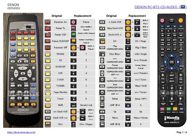 The document below contains the correspondence between the keys on the original remote control and those on the replacement one.