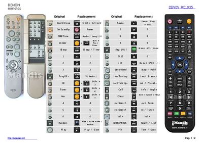 Télécommande de remplacement pour la télécommande Denon RC1035.