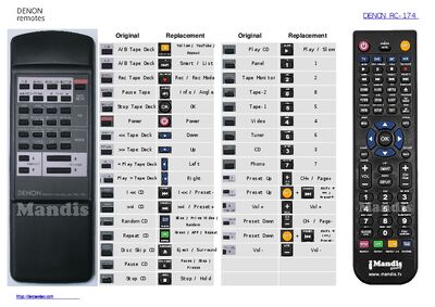 Telecomando di ricambio per il telecomando Denon RC-174.